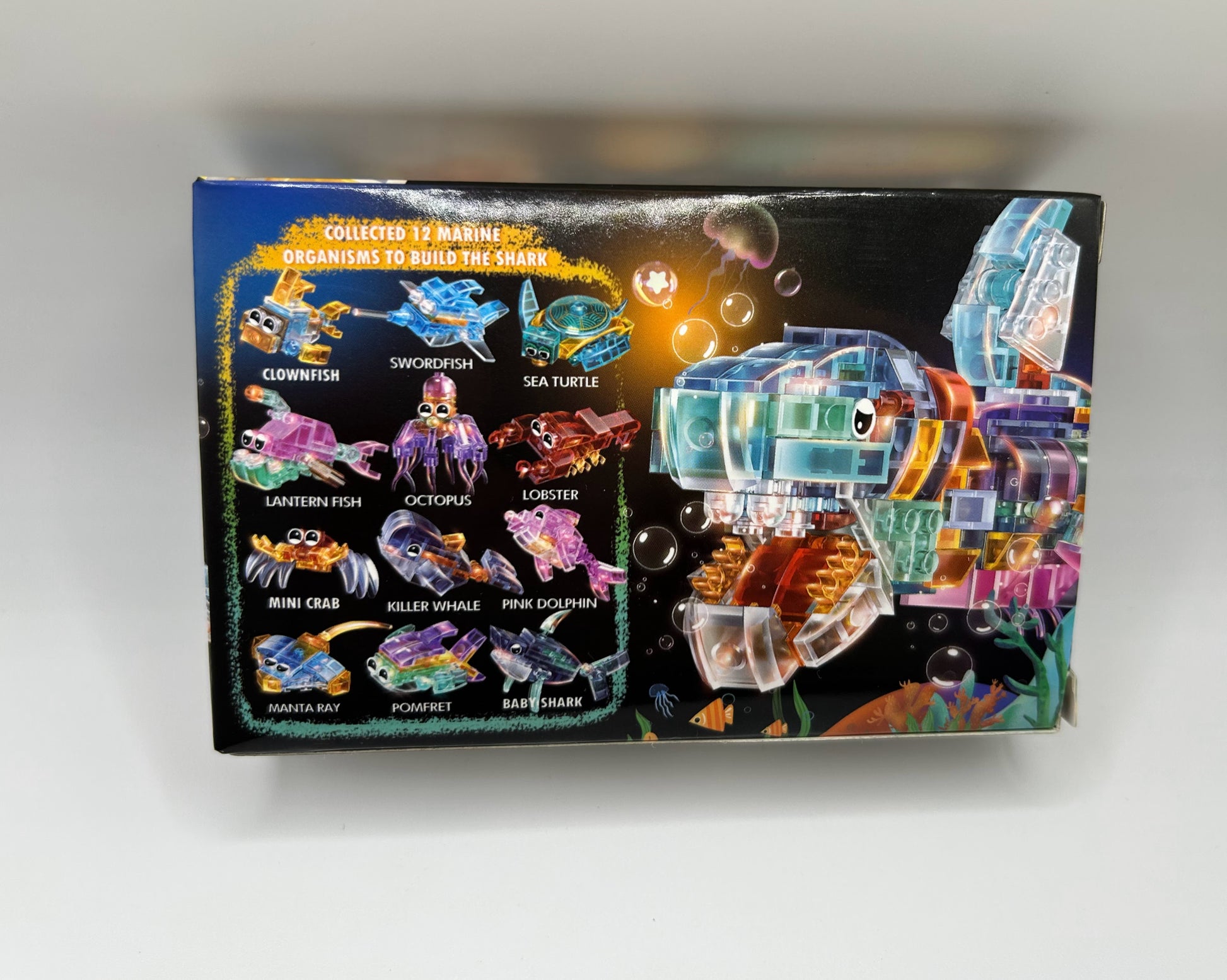 The entire set includes 12 unique sea creatures, each designed with detailed, colorful pieces that can be built and displayed on their own. All twelve models can also be combined to create One Mega Shark, making it a fun and versatile building experience. Perfect for kids and collectors who enjoy creative underwater adventures and customizable builds.
